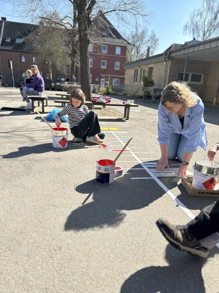 Was für eine tolle Aktion! Gemeinsam mit vielen engagierten Eltern und Großeltern wurde unser Schulhof an der Regentenstraße verwandelt. Mit viel Kreativität, Farbe und guter Laune sind zahlreiche Hüpfkästchen und Bewegungsspiele entstanden, die nun für noch mehr Spaß in den Pausen sorgen.