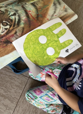 Nachdem es sich alle mit Kissen, Decken und Popcorn gemütlich gemacht hatten, wurde gemeinsam die Geschichte von den Olchis „Ein Drachenfest für Feuerstuhl“ gelesen.