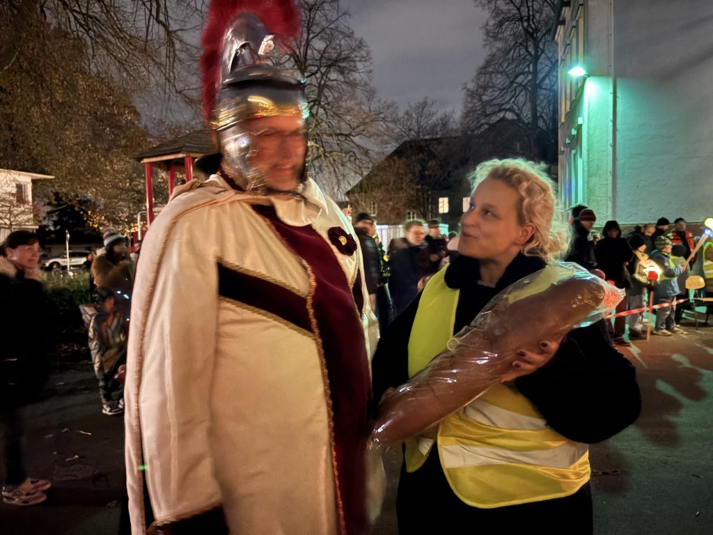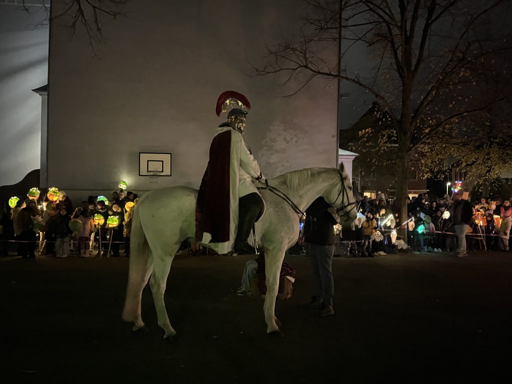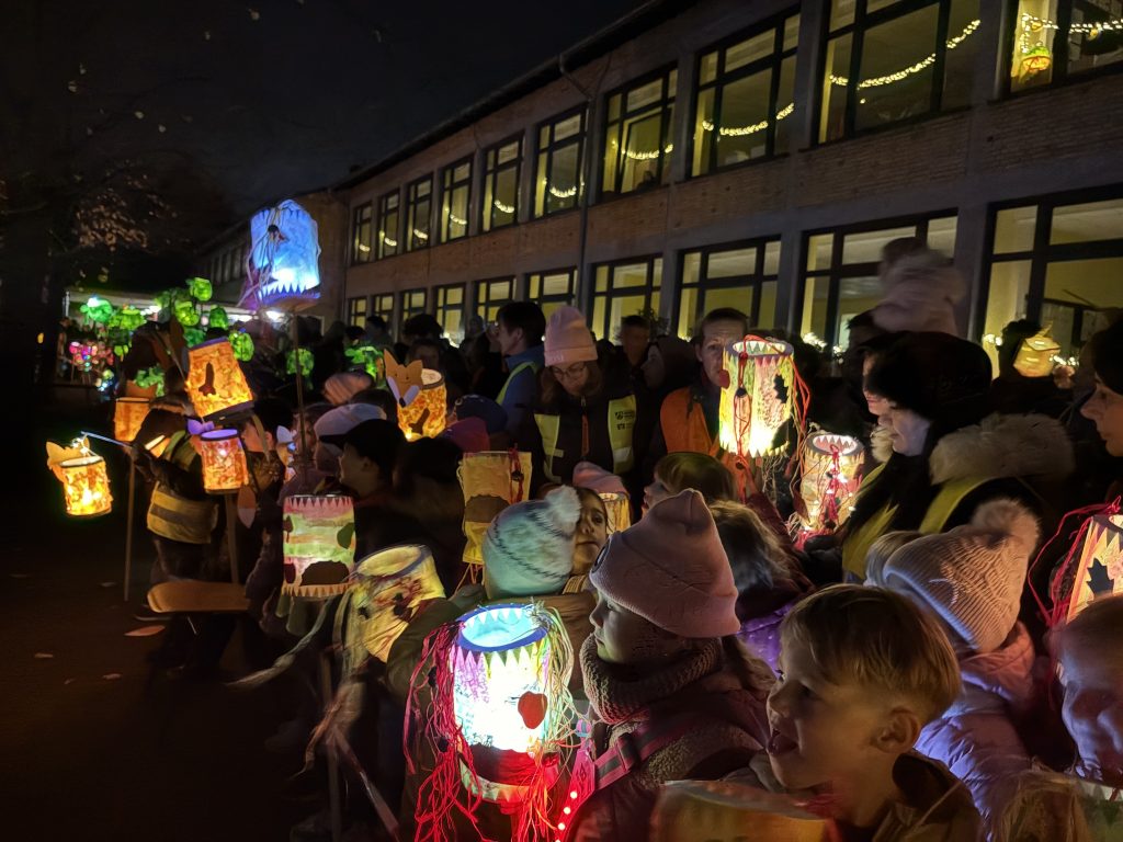 Am vergangenen Montag, 03.11.2025 erstrahlte unser Schulhof in einem bunten Lichtermeer: Der traditionelle Sankt-Martins-Umzug war wieder ein voller Erfolg! Viele leuchtende Laternen, fröhliche Kinderstimmen und eine festliche Stimmung sorgten für einen schönen Martinsabend. Die Musikkapellen vom Vierzehner Tampourcorps und die Big-Band-Spieler des Albertus-Magnus-Gymnasiums sorgten dafür, dass die Martinslieder kräftig gesungen werden konnten.